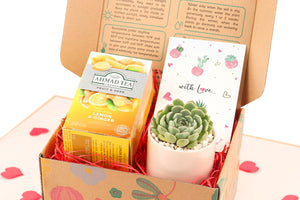 Warmest Wishes Succulent Gift Box - 1 Succulent & 1 Box of Lemon Ginger Tea, Christmas Holiday Gift Ideas