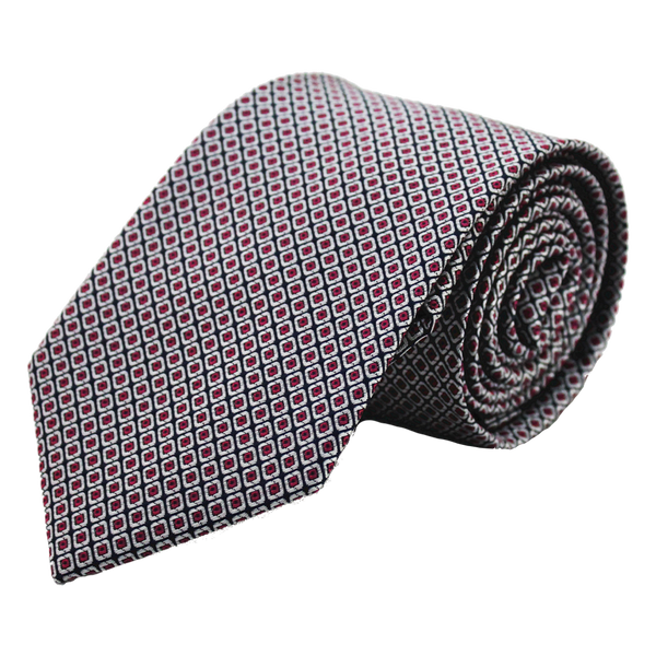 Ruby Illusions Tie: Elevate your professional style with this striking red tie featuring a cross pattern in white and blue. Perfect for the office or date night, this statement piece will captivate all eyes.