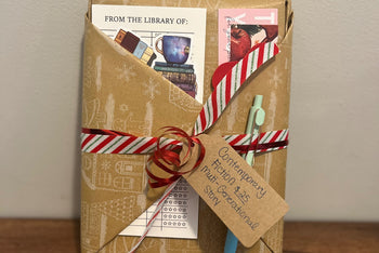 One new, hardcover wrapped book and cute extras like bookmarks, stickers, tea and more!