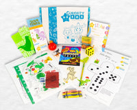 Mystery box with 2 crafts, book, toys & activities for kids 2-4! Perfect gift to maximize fun & spend quality family time. Filled with surprises!