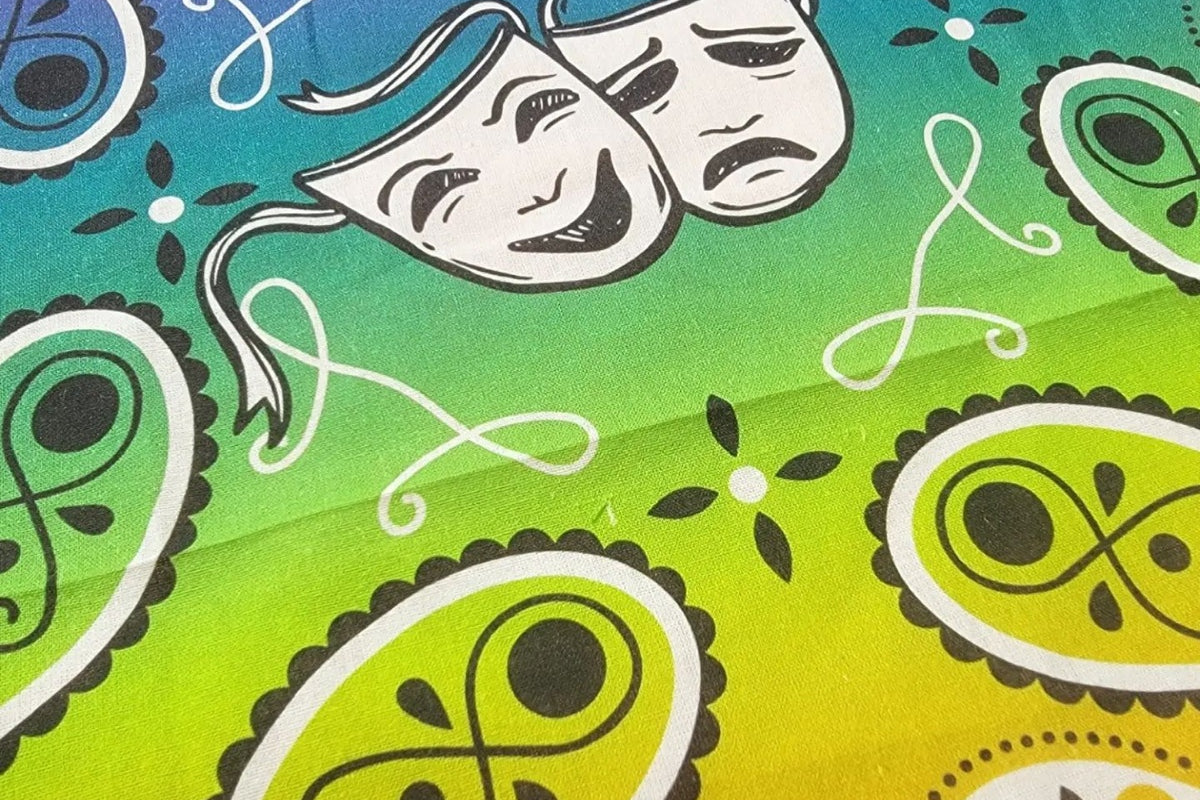Wrap it around your neck, style your hair, or dress up your furry friend. Perfect for Broadway enthusiasts and Pride celebrations. Show your love for the stage and self-expression with this colorful, musical-themed bandana!