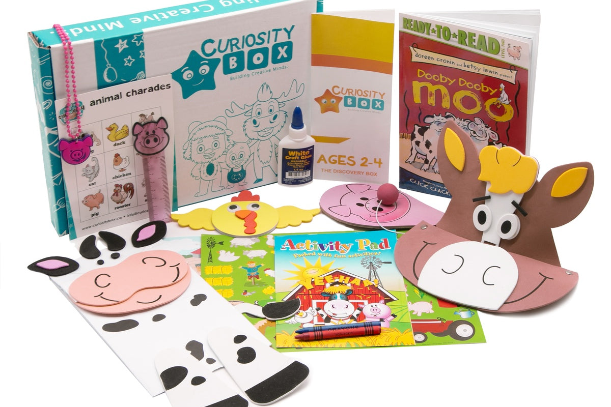 Mystery box with 2 crafts, book, toys & activities for kids 2-4! Perfect gift to maximize fun & spend quality family time. Filled with surprises!