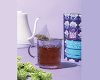 Give the Tea Lover in your life the gift of Laki's Dreamy Night Herbal Tea Gift Set - featuring our calming artisan tea blend crafted for restful nights – Designed to help you relax naturally, Laki’s gourmet Dreamy Night Tea blends calming herbs like valerian root, lavender, chamomile flowers, and lemon balm with refreshing notes of spearmint and subtle sweetness from honeybush tea and cherries. A true "Dream in a Cup."- Contains 1 Dreamy Night Tea Pouch with 18 Pyramid Tea Bags, 1 Embossed Tea Mug, 1 Rose Gold Spoon
