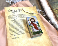 Exquisite St. Francis necklace crafted with stunning detail, comes with a charm and burlap bag. A must-have for devotees, perfect for spiritual connection and stylish accessorizing.