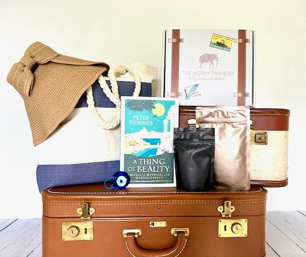 Embark on a Grecian adventure with "A Thing of Beauty" by Peter Fiennes. This hardbound book explores Greek myths and their modern relevance. Accompanied by tea, coffee, an Evil Eye glass ornament, bookmark, canvas tote, and packable sun hat, immerse yourself in the beauty and wonder of Greece. Discover ancient tales and their contemporary significance in this engaging journey through history and culture.More from The Wordy Traveler