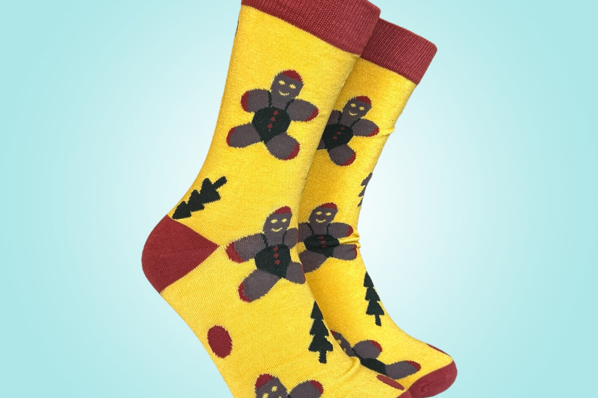 Soft bamboo socks with nostalgic gingerbread man design for women - cozy and whimsical!