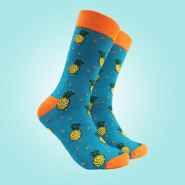 Golden Pineapple Socks for Men - Fun Bamboo Fiber, Party Time! Sizes 6-12.5