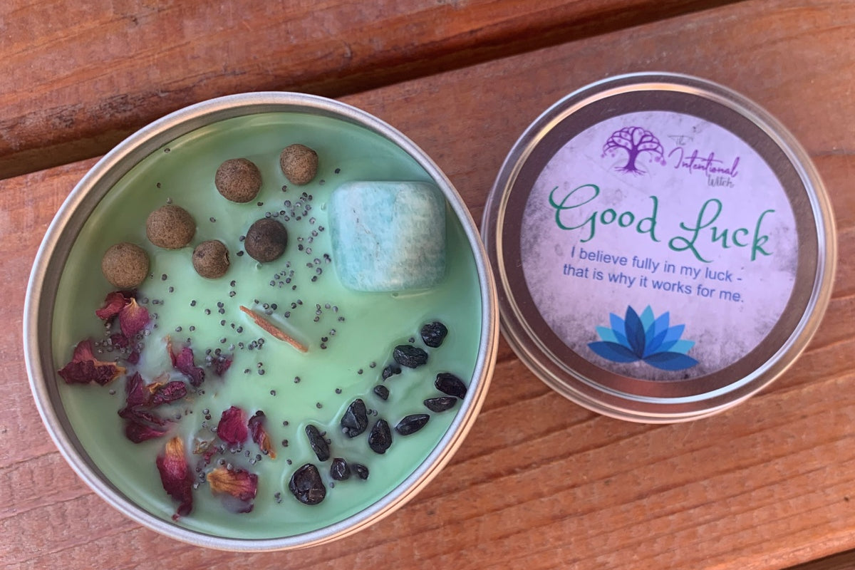 🍀 Good Luck Intention Candle 🍀Summon fortune with our handcrafted 6.5 oz candle: