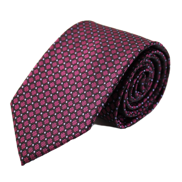 Inverted Berry: Turn heads at formal events with our navy blue tie adorned with magenta pink pin dots. A unique and subtle way to stand out while staying classy. Add this must-have to your collection!