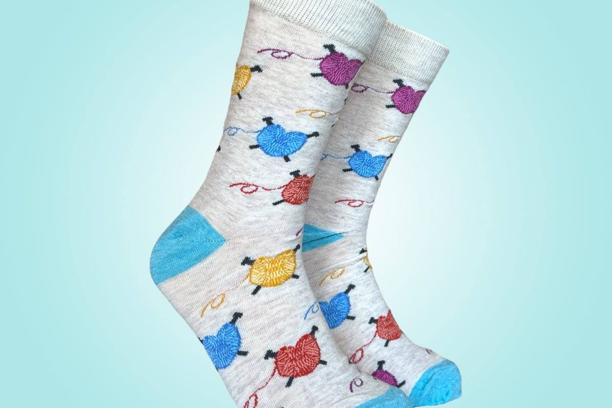 Heart Yarn Sock - Women'sAdorable gray socks adorned with colorful yarn hearts. Part of our bamboo sock subscription collection, these cuties are super soft and comfortable. Perfect for adding a touch of romance to your outfit!