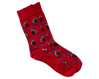 Navy blue bamboo sock with red/white patterns; fits men's 6-12.5. Stand out discreetly at the office with these stylish yet office-appropriate socks.