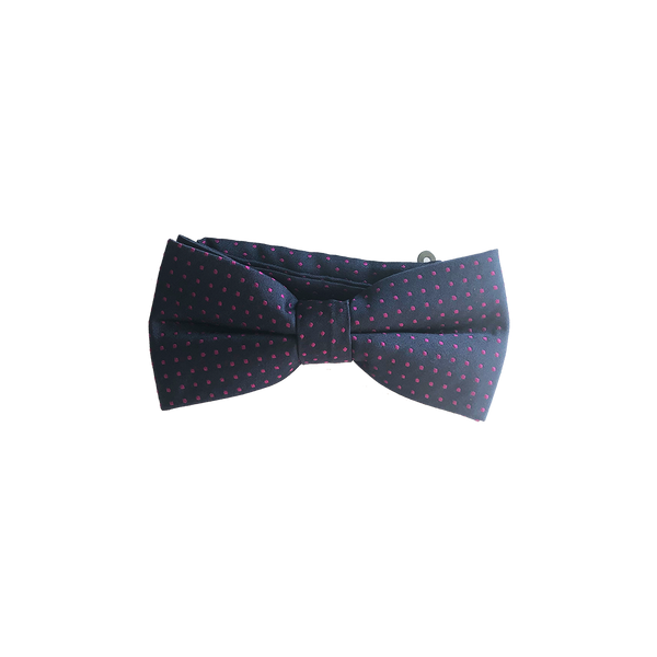 Navy blue bow tie with fuchsia polka dots - an inverted strawberry style for casual looks