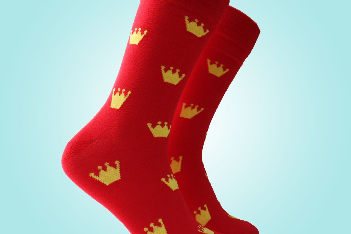 King's Court Socks - For Royal Comfort, Bold Red with Yellow Crown Pattern, Bamboo Fiber