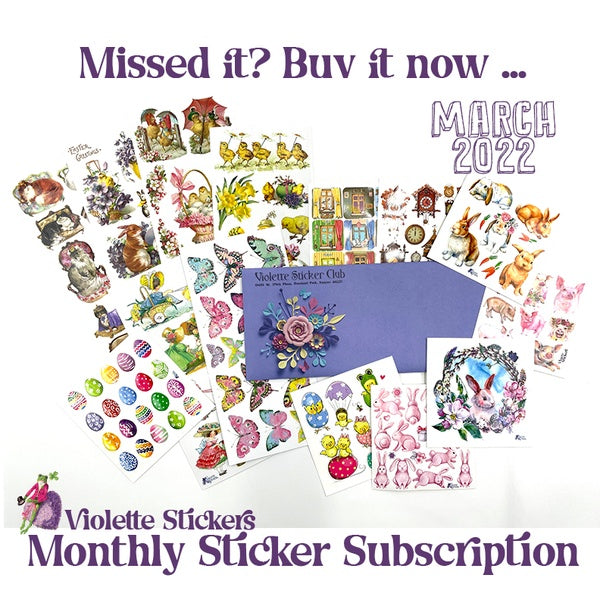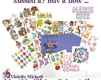 15 Sheets of Violette Stickers full size and exploding with color and detail delivered monthly!