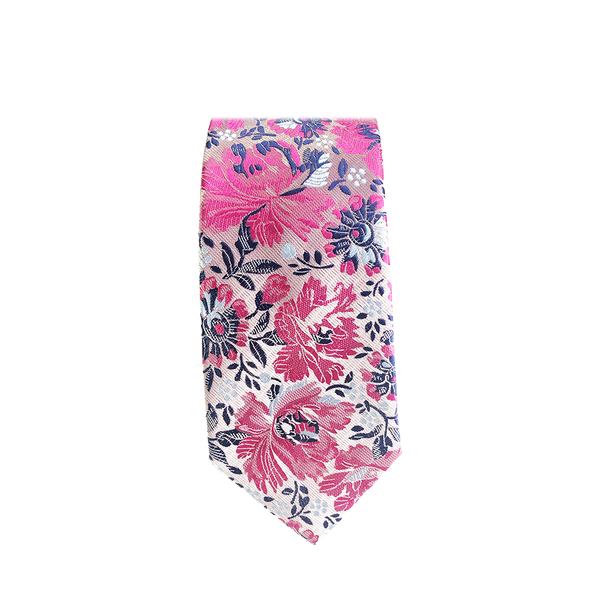 May Flowers: Elevate Your StyleBold floral patterns are the new power move in the boardroom. This skinny tie features a striking pink and gray floral design, offering an unexpected touch that outshines traditional pin dots and repp stripes. Make a statement and bloom with confidence in any professional setting.