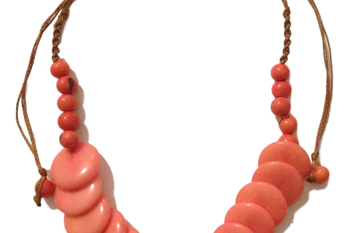 Handcrafted tagua nut necklace from Ecuador. Colorful, lightweight, and adjustable. Sustainable alternative to ivory. Variations in color/pattern are normal.