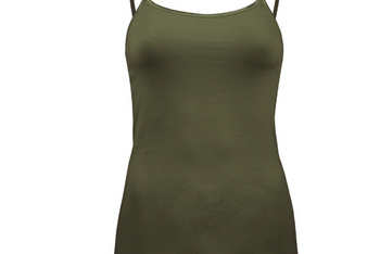 Versatile olive cami with adjustable spaghetti straps and soft fabric. Perfect layering basic for extra coverage or pop of color under your favorite fall blouse.