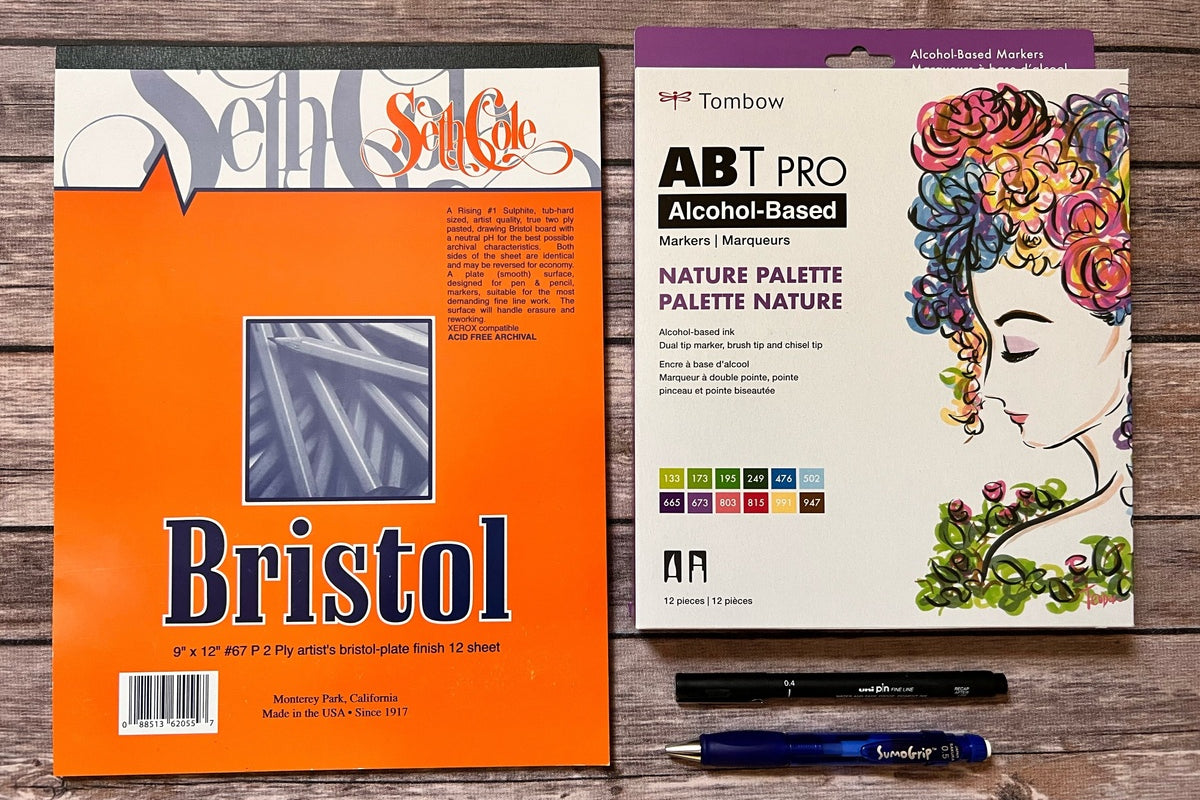 Tombow ABT PRO Alcohol-Based Marker 12pc Nature Set, Seth Cole Bristol (Plate) 9" x 12" Pad, Sakura Sumo Grip Pencil, and Uni Pin Fineliner 0.4Premier Pack September 2022 - Tombow ABT PRO Alcohol-Based Marker is not available, but you'll love these other boxes!