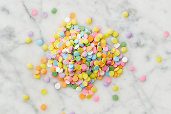 Sprinkles: Pastel Rounds - Adorable edible confetti add pastel colors and texture to treats! 1/4" wide and 1/32" thick, the perfect size for cupcakes or large cakes. Bring fun to your baked goods!
