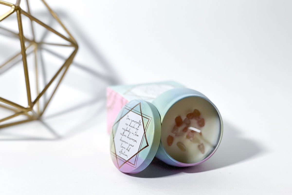 Self Love Candle: Apricot Scented Soy Candle w/ Rose Quartz, Relaxing & Uplifting
