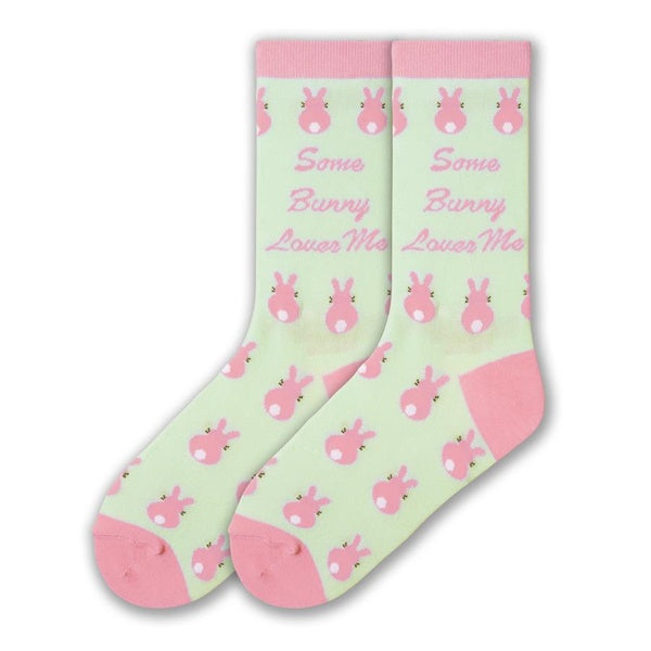 Some Bunny Loves Me: Soft Aqua Blue Crew Socks w/ Adorable Bunny Print