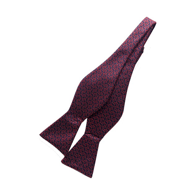 Spinning Circles Bow TieMake a statement with this eye-catching black self-tying bow tie. Adorned with a striking red circle pattern, it's sure to turn heads and elevate any ensemble. A must-have addition to your collection, this unique accessory brings a touch of sophistication and flair to any formal or semi-formal occasion.