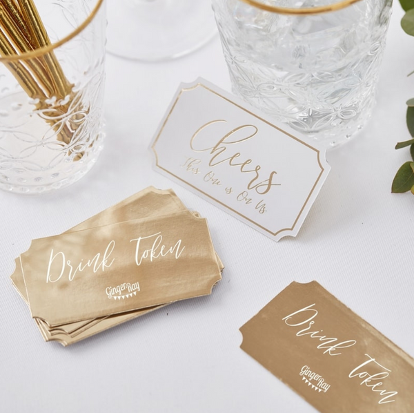 Wedding Drink TokensElevate your reception with stylish white and gold foiled drinks tokens! ✨