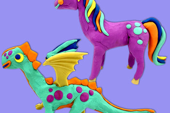 Create mythical adventures with 2 clay creatures, 2 flying dragons, 2 unicorn watercolors, 2 eggs, 4 figures. Quality crafts & tutorials. Ages 3-9 (assistance needed for young kids).