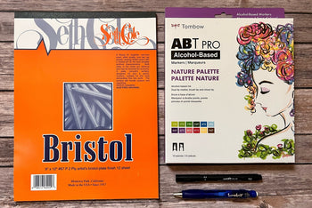 Sketch marker set: Marabu Heat Set, Faber-Castell Pitt (Gold/White), Art Alternatives Pigment Liner. Includes Seth Cole 5"x7" Bristol Plate Finish paper.